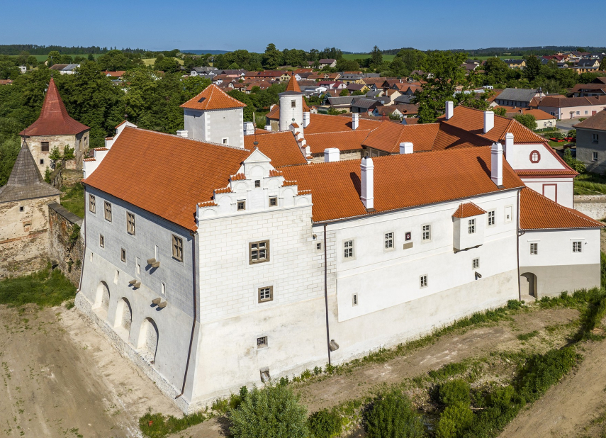 Za Stanovicemi dáme velký pozor při křížení frekventované silnice č. 19 a v Pejškově zahneme hned na začátku obce na Lipici. Tuto další vesnickou „okrouhlici“ protneme směrem na Bítětice k samotě nazvané Bacovská hospoda, snad dle někdejšího zájezdního hostince, a u Milotiček se k nám připojí cyklotrasa č. 1218, s níž už dorazíme do Červené Řečice. Někdejší (arci)biskupské město, jak by se Řečice dala vznešeně nazvat, se sice může chlubit znovu vráceným městským titulem, hlavní chlouba – renesanční zámek – povstal z popela a po rozsáhlé rekonstrukci je v plné své kráse otevřen veřejnosti.Snad mu v tomto ohledu pomůže i titul národní kulturní památky. Po obkroužení zámku opustíme Řečici okolo kostela sv. Magdalény v doprovodu žluté turistické značky, která nás dovede k silnici a záhy k hladině přehrady Trnávka. Malebným zákoutím okolo přehrady snad neubere na kráse méně kvalitní cesta, po chvíli se však opět dostáváme na asfaltku, jež nás vede do osady Brtná. Výjezd od přehrady do kopců nás obrací k návratu do startovního města Pelhřimova.Přes Svépravice a Pobistrýce sledujeme zpovzdálí údolí potoka Hejlovka, které překonáme u Krasíkovic. Na trase se nedržíme cyklistického značení, snad jen během posledního úseku k Raděnínu. Odtud můžeme pokračovat krásnou novou asfaltkou okolo Raděnínského rybníka, která naváže na cyklostezky v Městských sadech Pelhřimova. A to už jsme zpět v centru města, kde se po cyklovyjížďce pohodlně usaďte v některé z místních kaváren a vychutnejte si něco dobrého.
